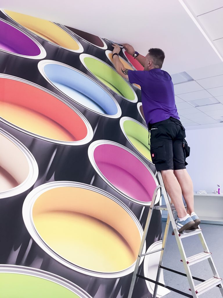 Transform interior spaces with custom wall graphics and bespoke wallpapers for offices, retail and commercial environments. High-resolution large format printing, premium materials and expert installation for lasting visual impact.